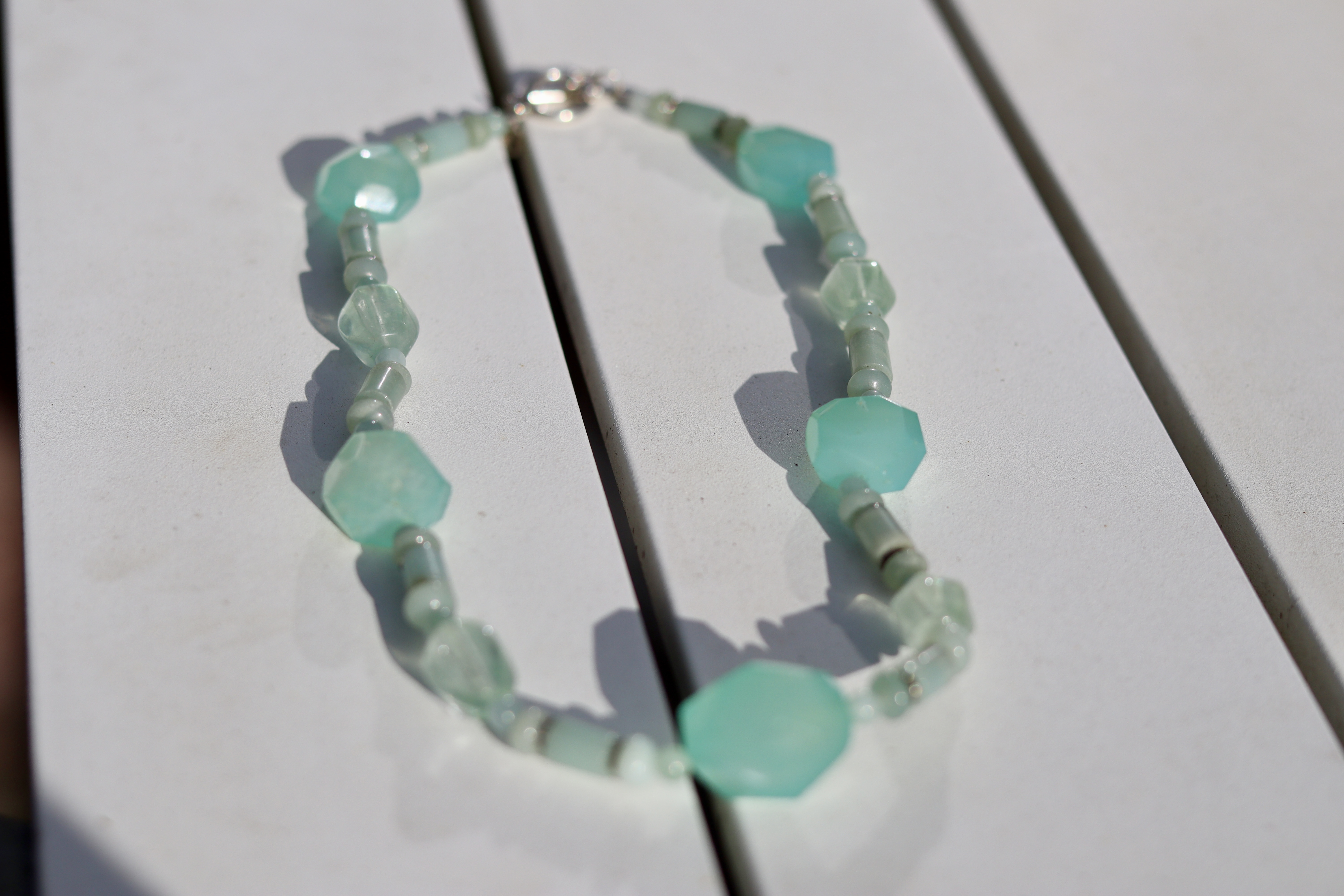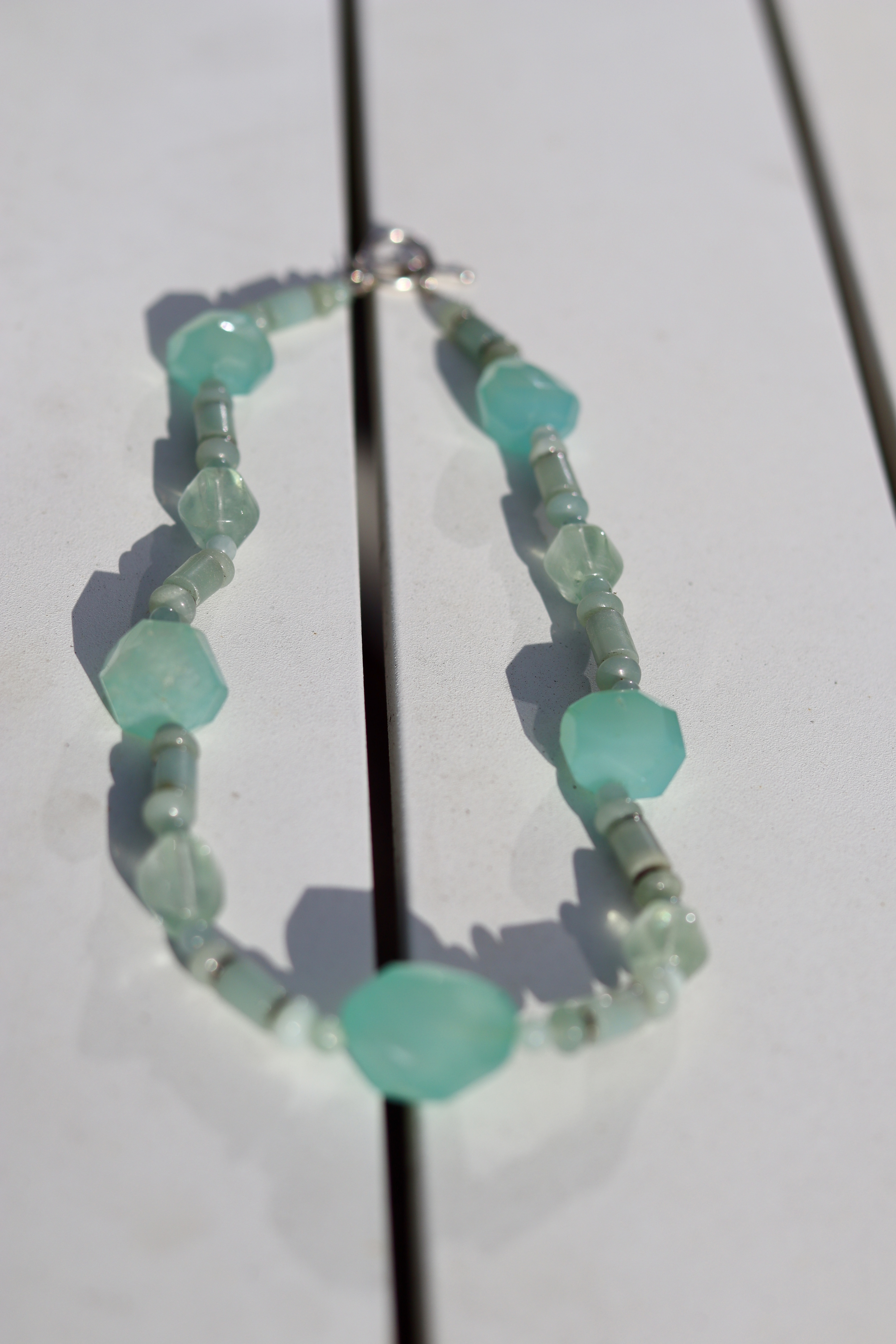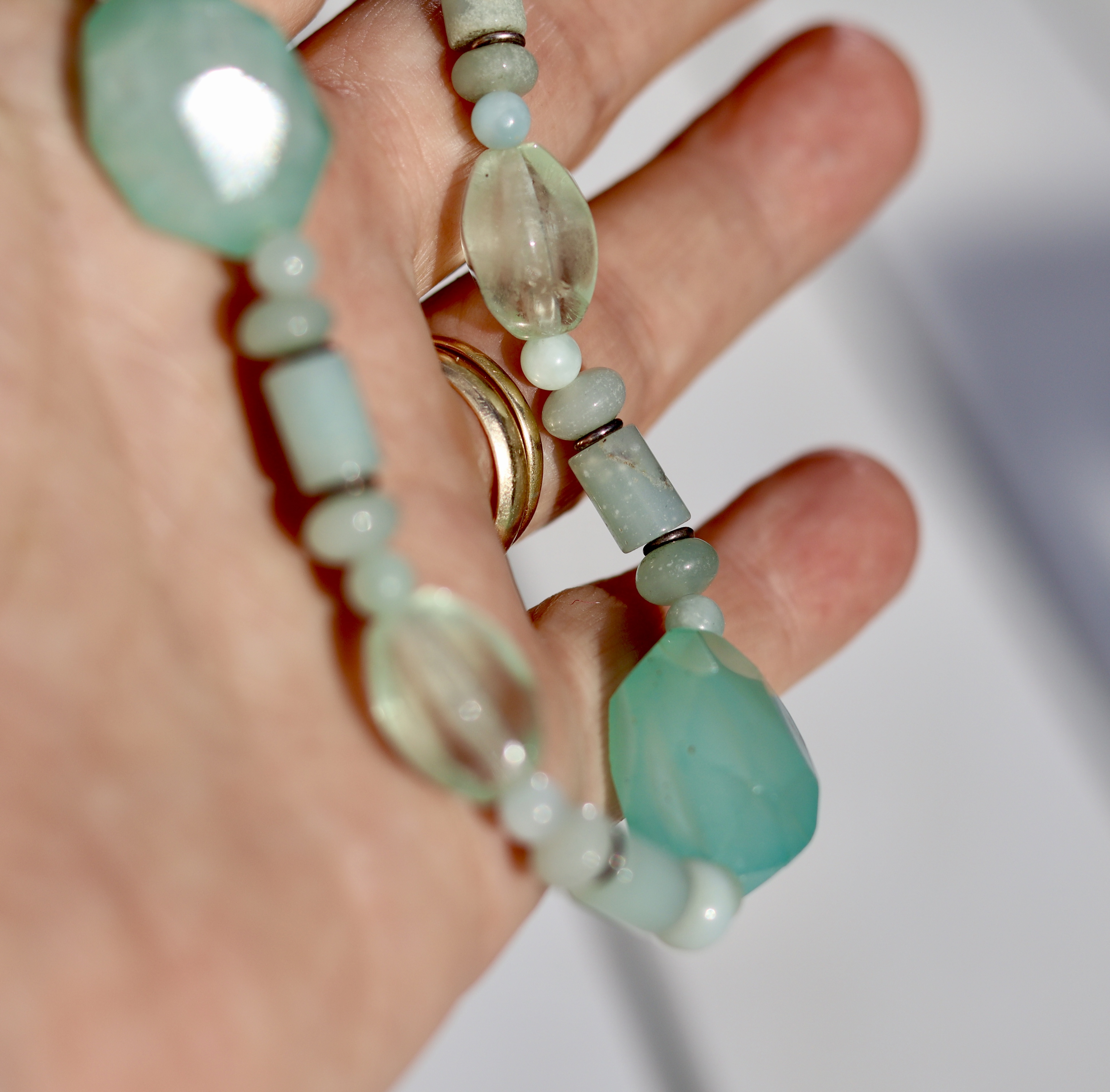 Stunning blues in this necklace. Unsure of all gemstones