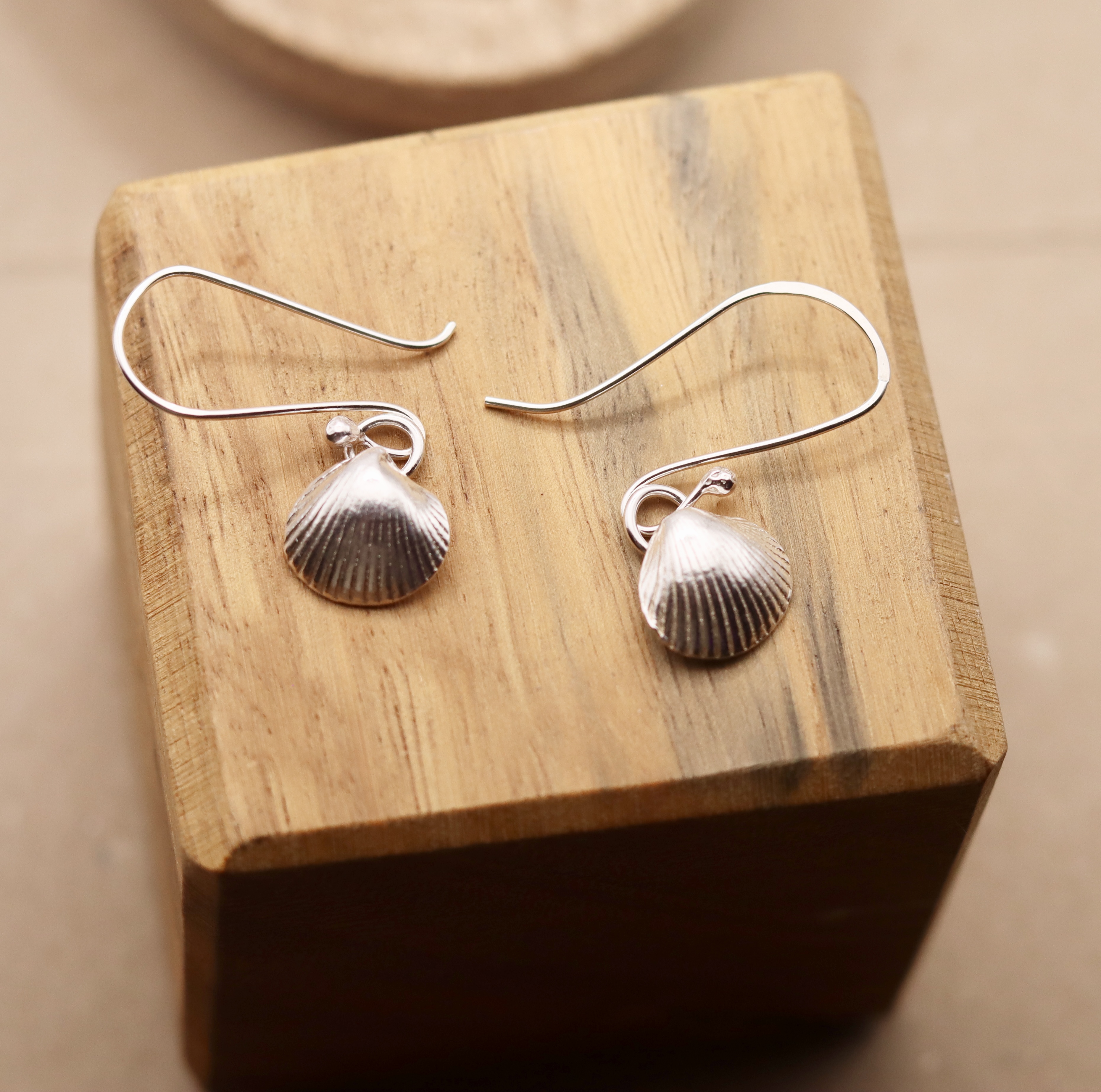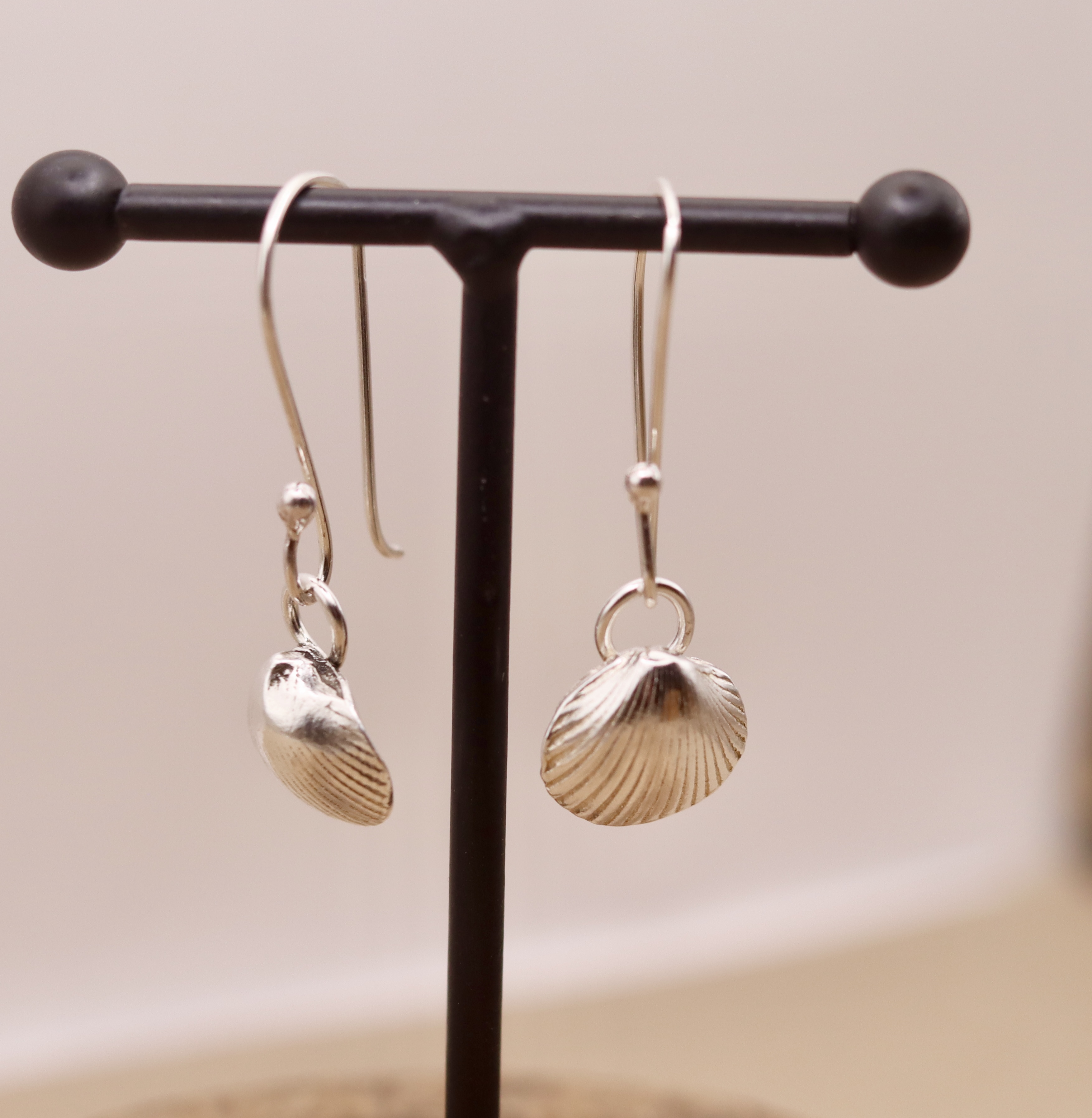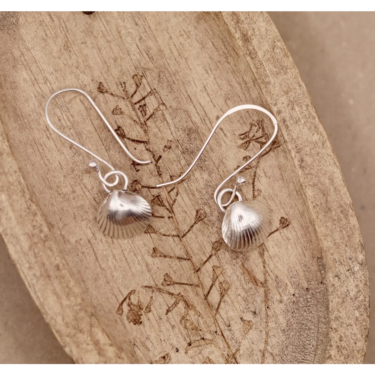 Shell earrings created using fine silver. Ear wires are sterling silver.
