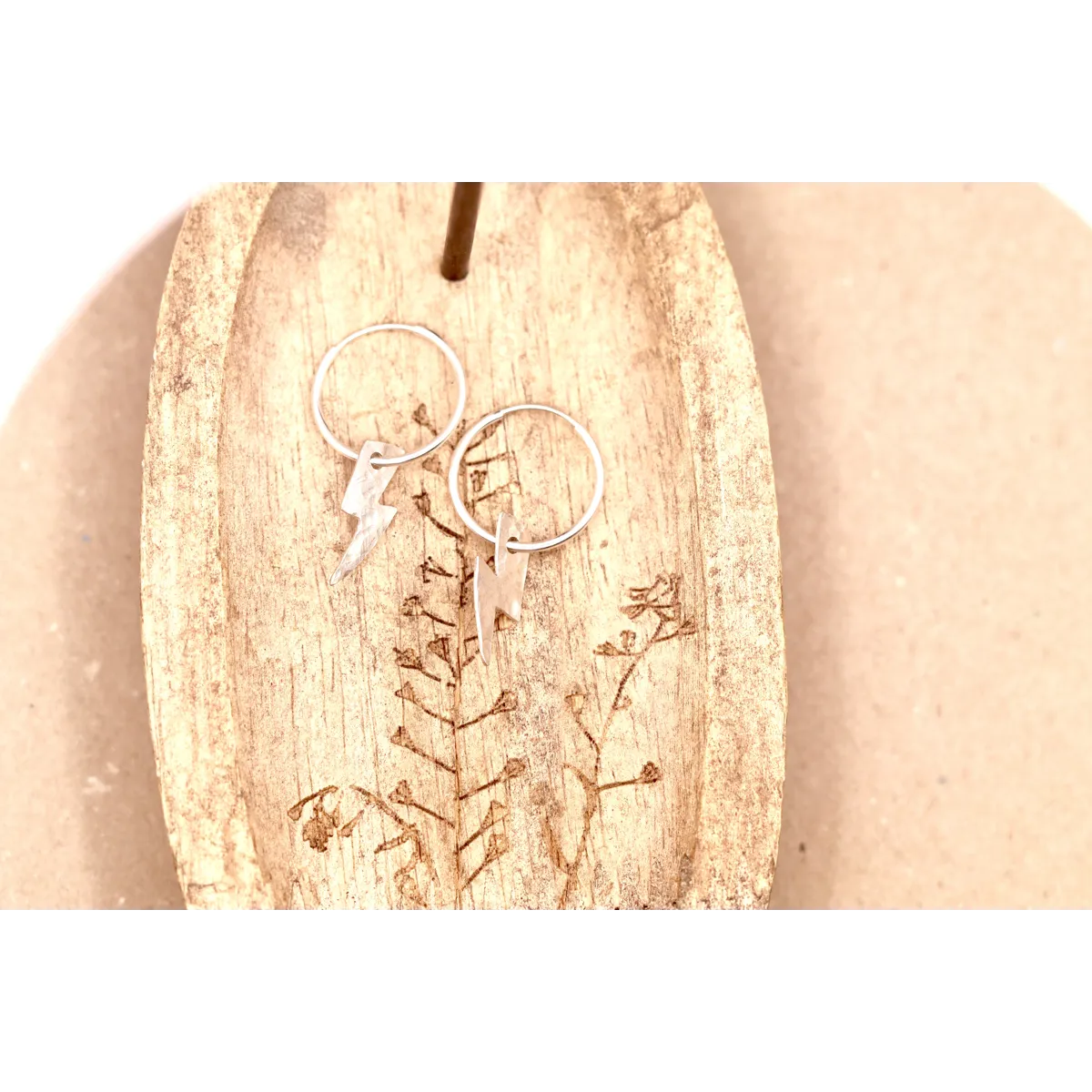Lightning bolt sterling silver hoop earrings.