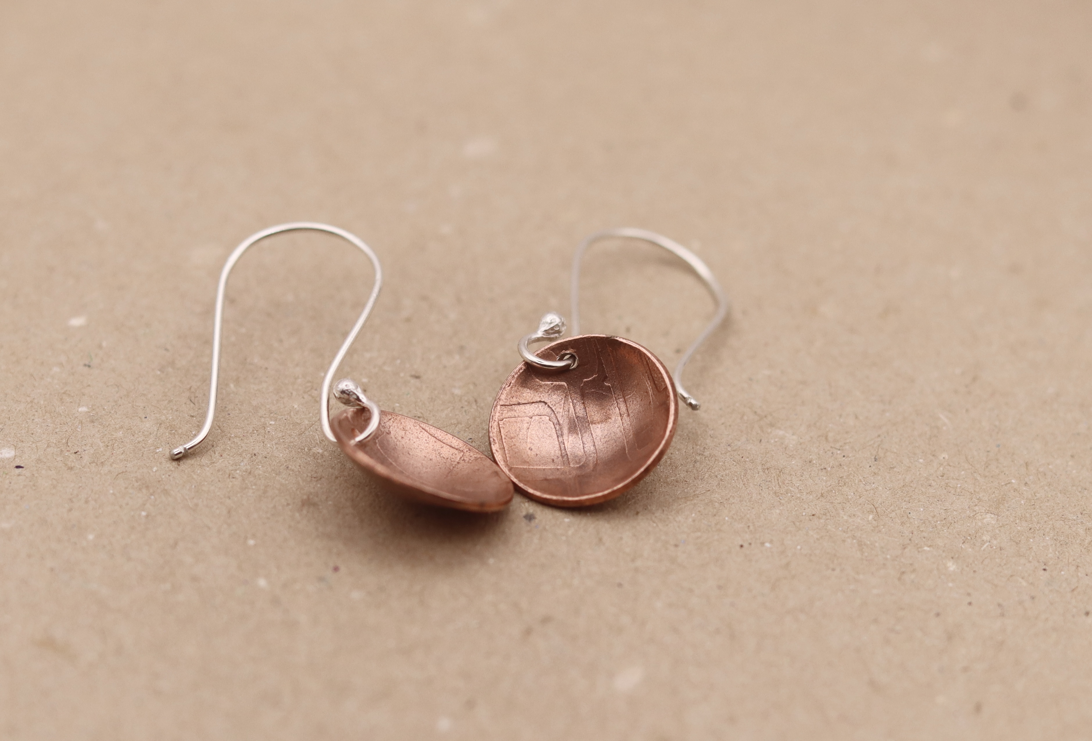 Lunar earrings. Copper or sterling silver available. Diameter of each lunar is approx 1.4cm