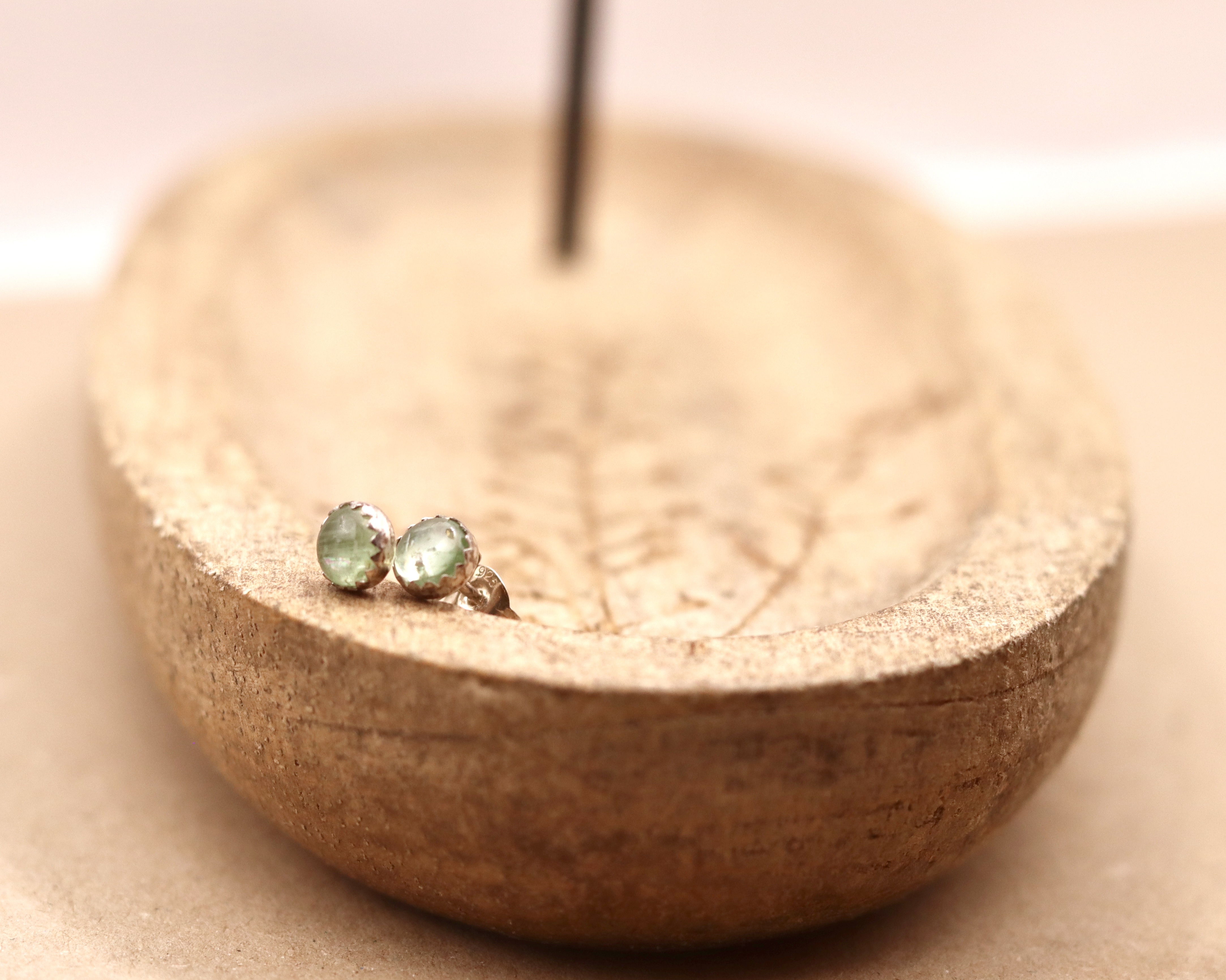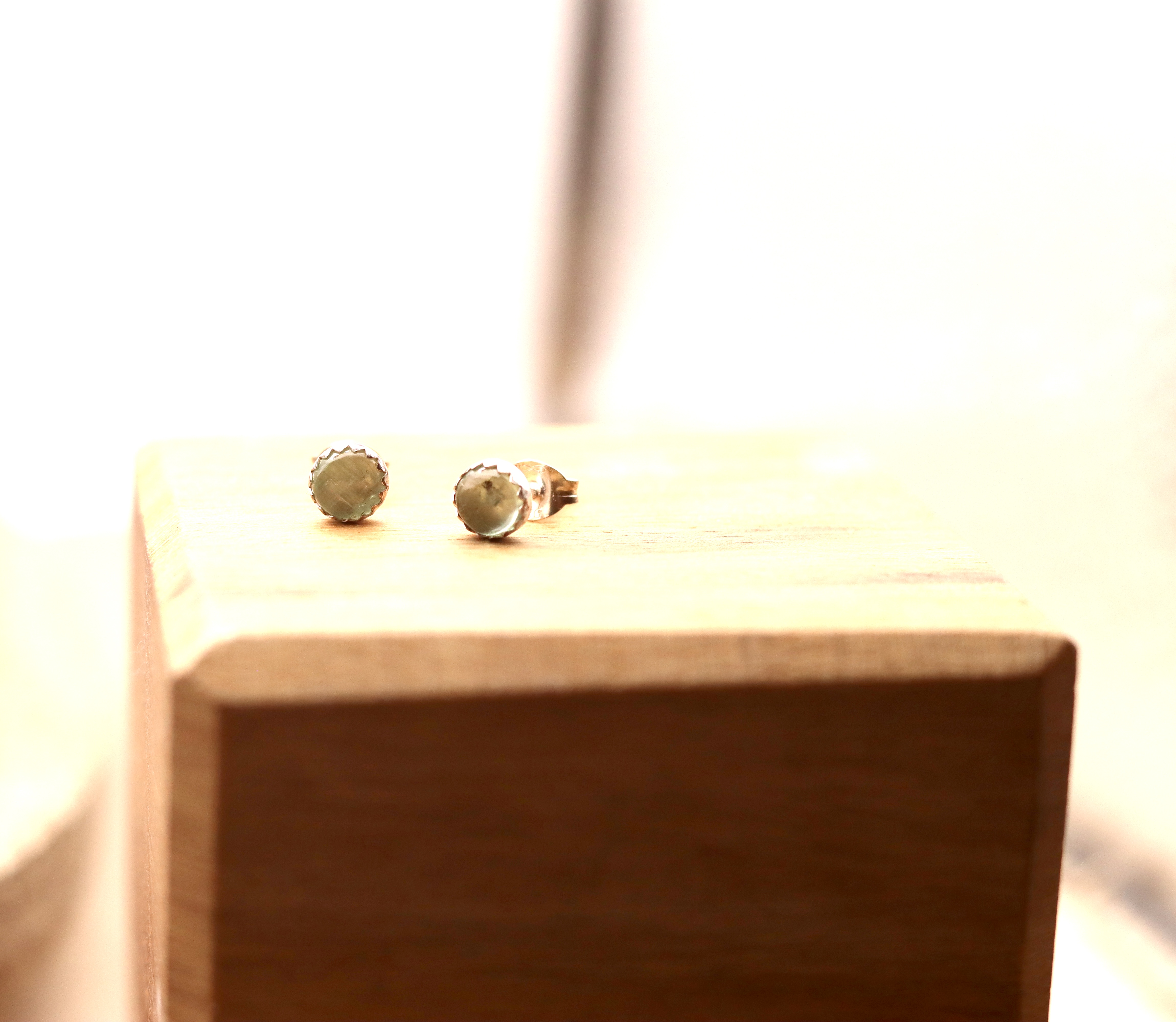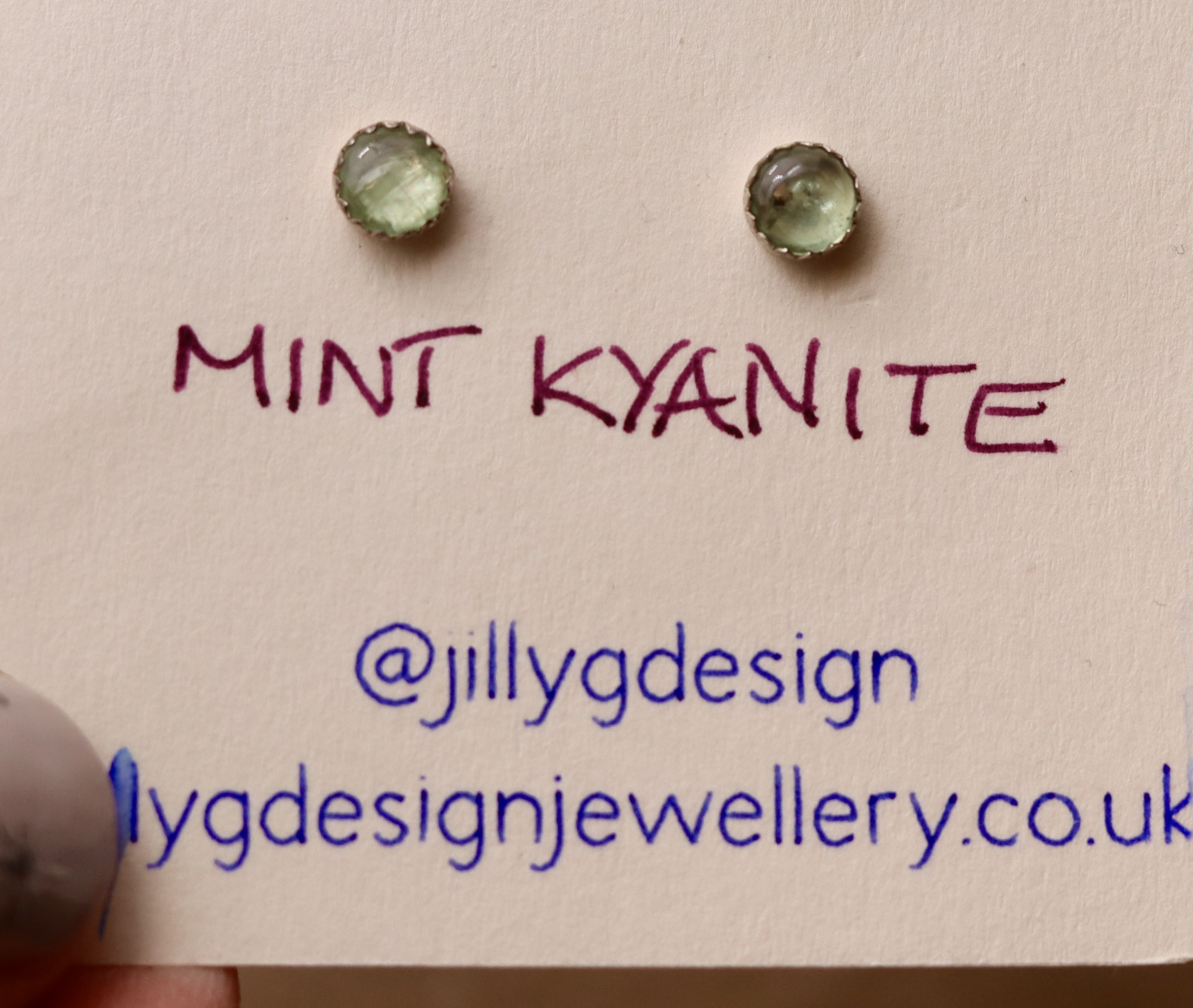 Cute little mint kyanite stud earrings. Set into sterling silver bezels.
